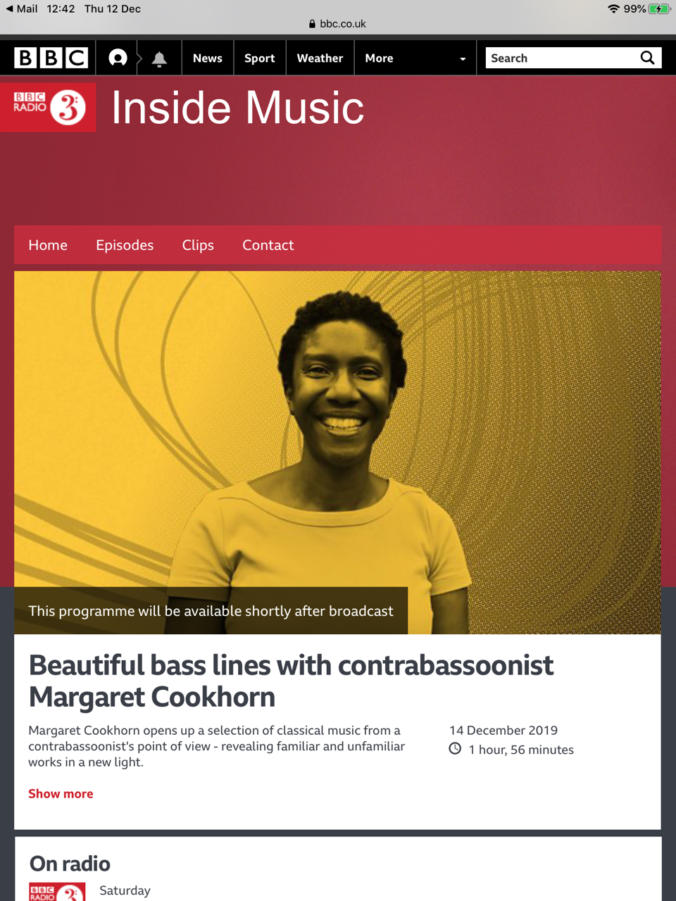 Margaret Cookhorn on BBC Radio 3