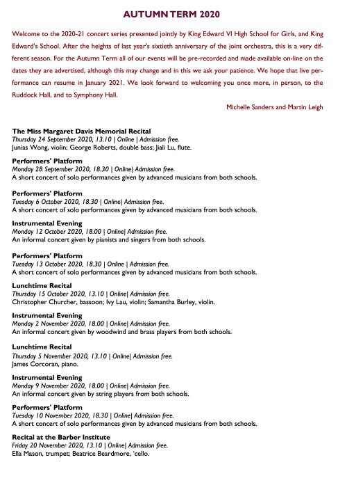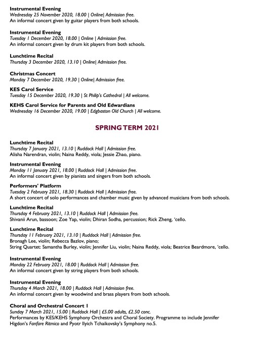 Music Calendar 2020 – 2021