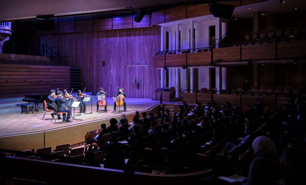 As the bell rang at the end of Period 5, crowds of pupils, Shells and Sixth Formers, KES and KEHS, made their way across the road to the Elgar Concert Hall of the University of Birmingham. The atmosphere was full of eager anticipation for this annual recital featuring the very best musicians of our two schools.