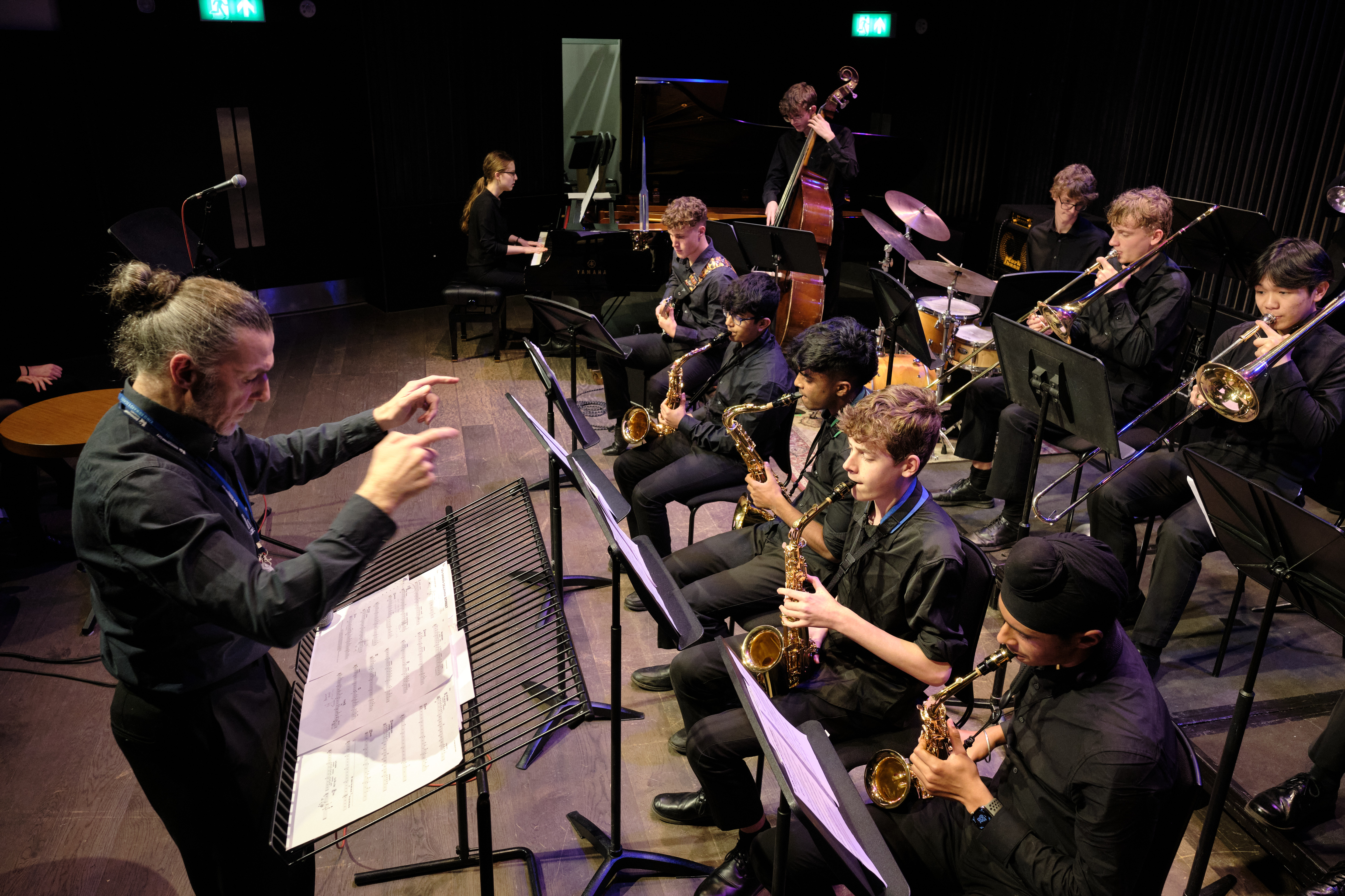 Last Monday 20th November, the Royal Birmingham Conservatoire invited our Big Band to open their Jazz Orchestra’s concert. The Big Band played some classic numbers, including Green Dolphin Street and When You’re Smiling; the latter, featuring pupil Eve on vocals. Thank you to Mr Hill and Mr Smith for working with the band in the lead-up to the event, thank you to the Conservatoire for having us, and thank you to Mr Ash for the photos!