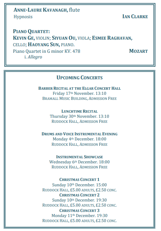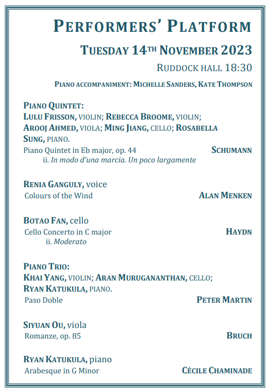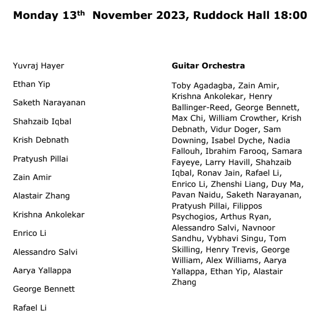 Tomorrow night, Wednesday 6th December, is our first ever Instrumental Evening Showcase; a programme of highlights from our 5 different Instrumental Evenings this term. The evening starts at 6pm in the Ruddock Hall.