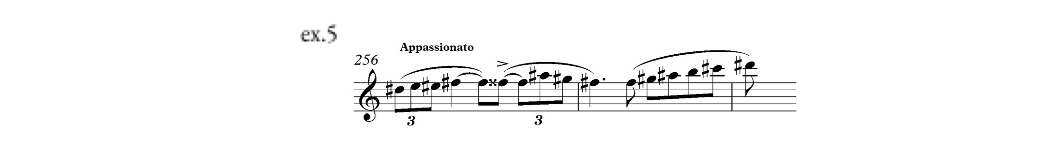 Other themes are also transformed throughout the work. For example, the flute’s dream-like triplet motif in the opening section: