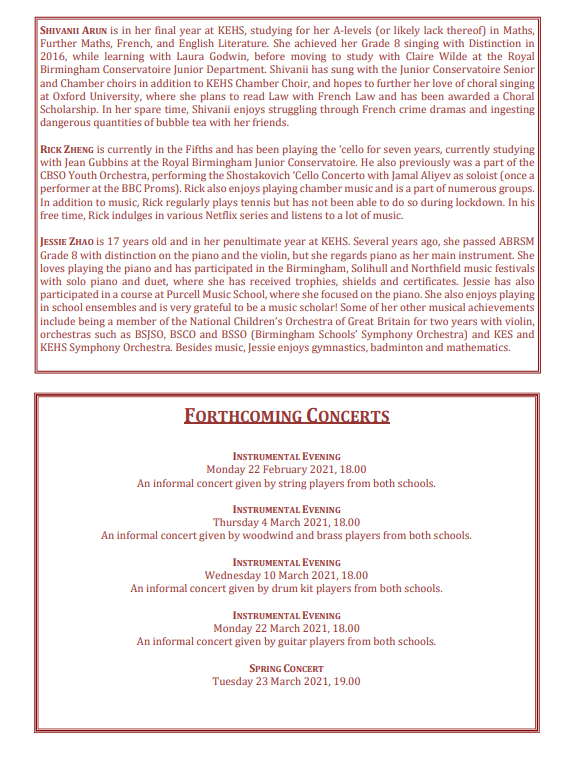 Maybe the ancient Greeks were getting somewhere by making Apollo in charge of both medicine and music. It’s no secret that music affects our brain, mood and stress through the function of neural networks which slow the heart rate, lower blood pressure and reduce levels of stress hormones. Yet, these clinical observations might not glean the full extent of music’s effect. Perhaps dramatically put by the poet Robert Browning, “He who hears music feels his solitude peopled all at once”. In many ways this holds true, as personally music often provides a solace and respite. Small things like putting on a good tune whilst washing the dishes are exceedingly therapeutic activities! However, above all, playing and listening to music is plain fun. I’ve spent countless hours browsing through many eras of music just appreciating the little quirks and characteristics. To stop there would be a shame, so I’ve tried my hand at emulating my favourite works on the piano and even an acapella voice. So, whenever the tiring online school day gets to you, remind yourself to have a break and immerse yourself with some music!