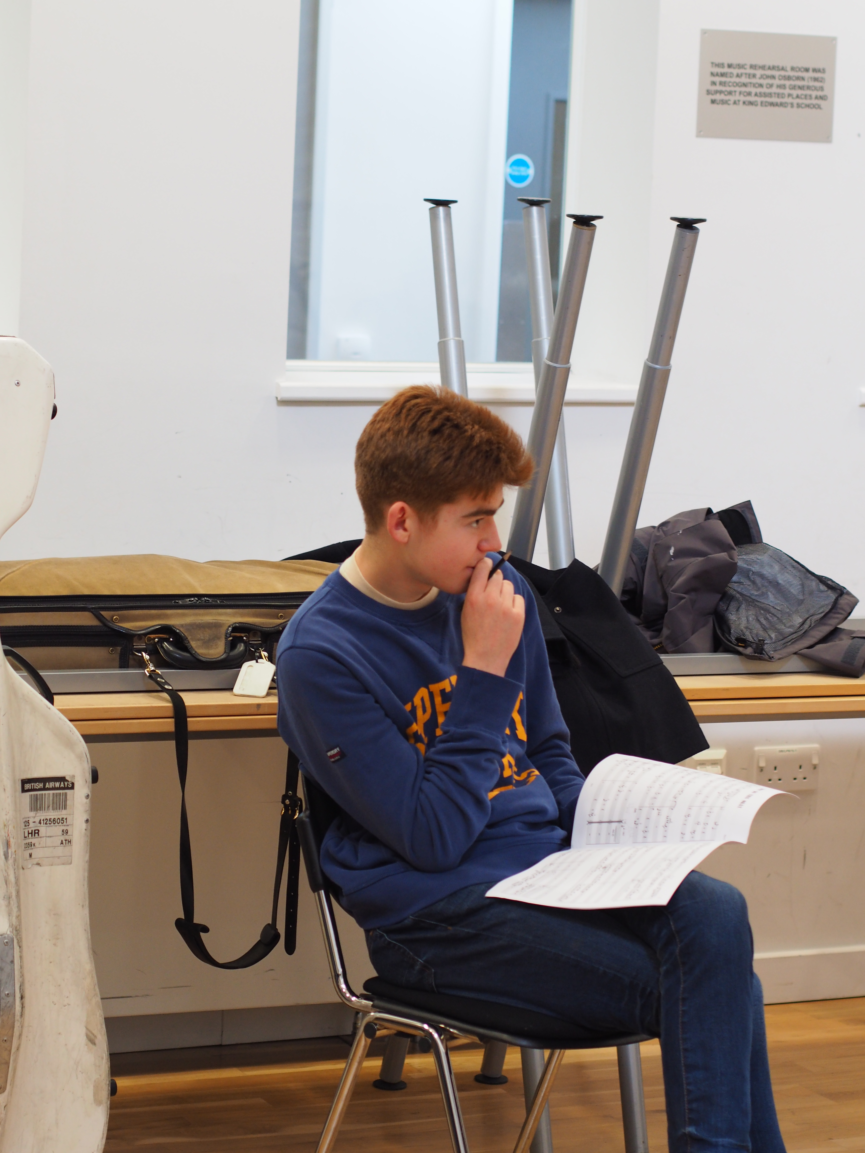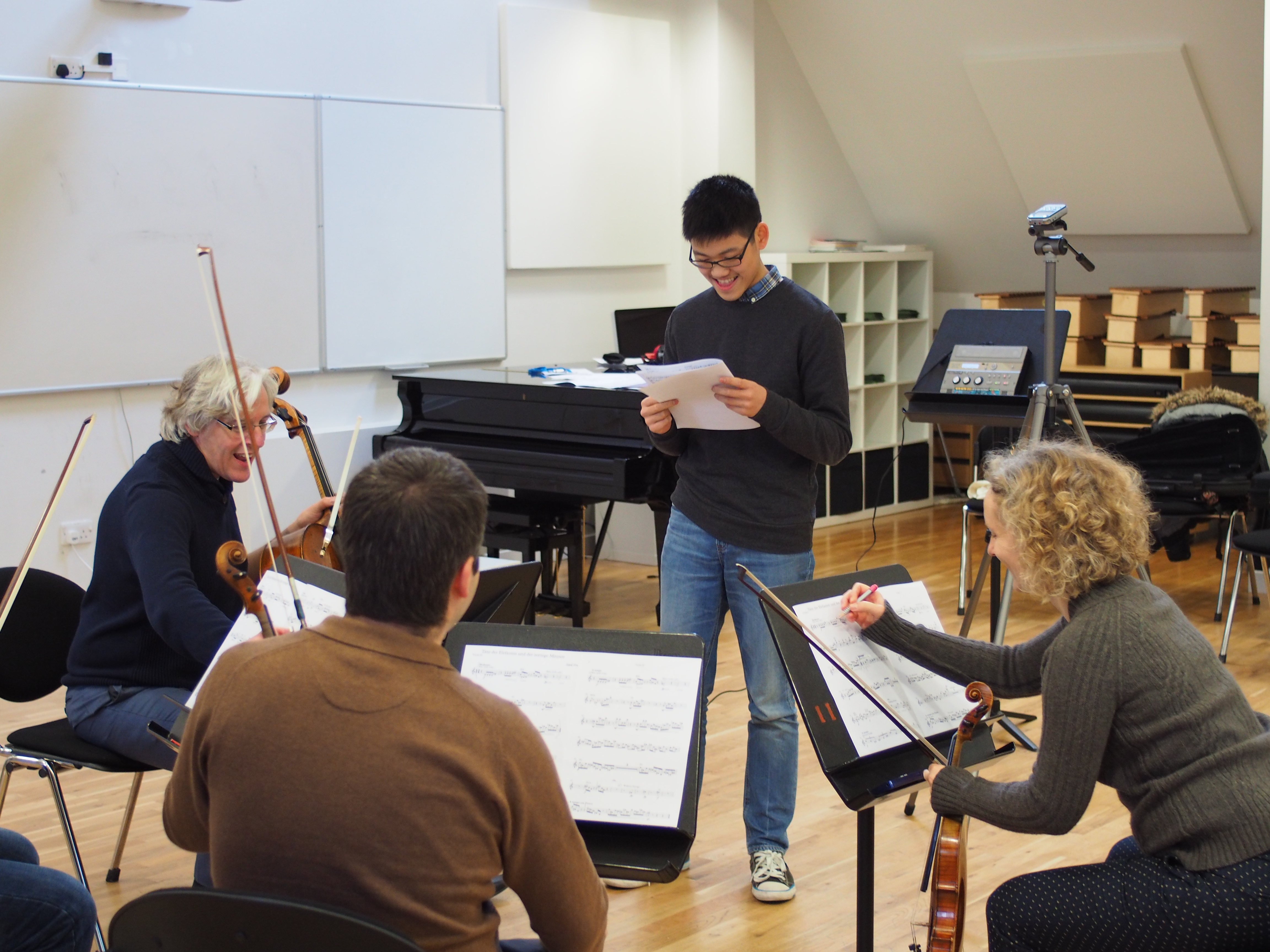As we progressed through pieces such as ‘Shi No Numa’, ‘Seriaously Bad’ and ‘Why?’ the general consensus amongst the composers began to change from “Grrr, Sunday” to one of a much more positive nature; it was as if real-life string instruments didn’t sound like saxophones as they did on Sibelius; as if this wasn’t all part of one of Dr Leigh’s evil plots! By the end of the session, we’d had great fun listening to some exquisite pieces, played in a manner both unforgettable and professional, and all in time for Sunday lunch.
